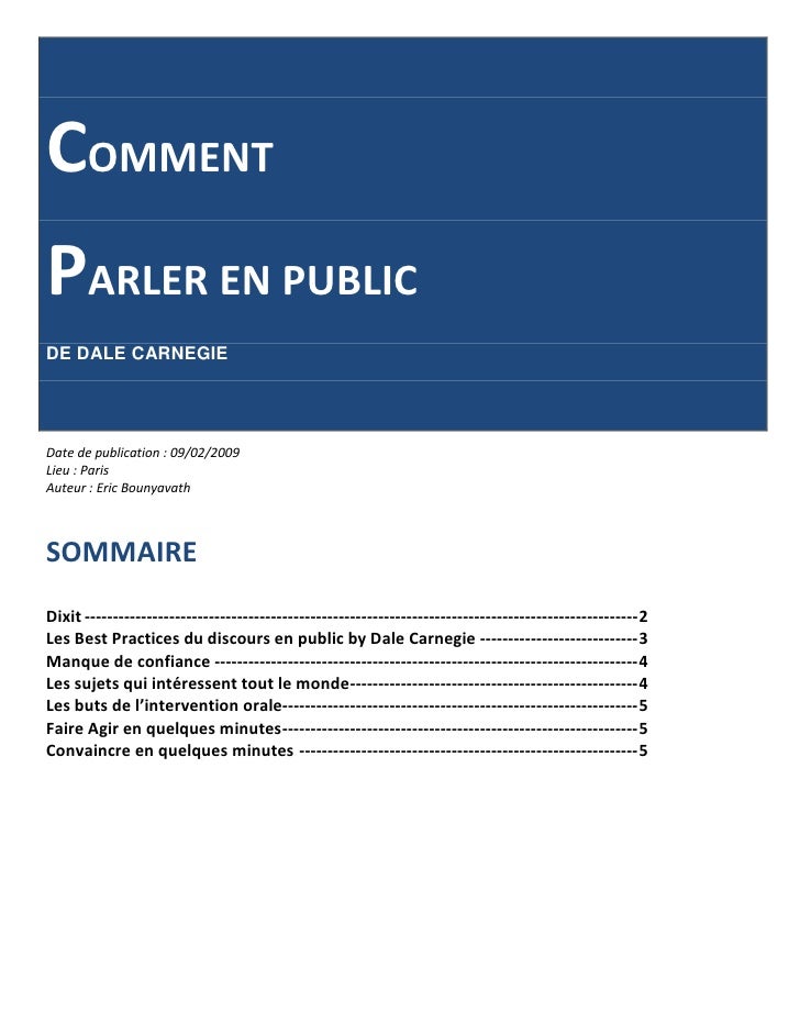 Détails de article sur - Comment Faire Un Discours En Public. -