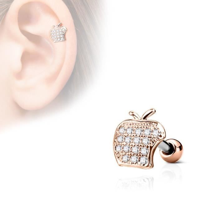 Piercing Cartilage Hélix Pomme Strass Plaqué Or Rose