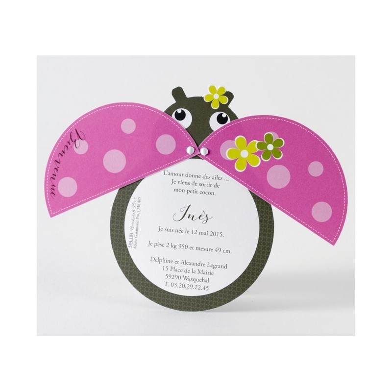 Faire Part Naissance Fantaisie Fille Coccinelle Rose Buromac