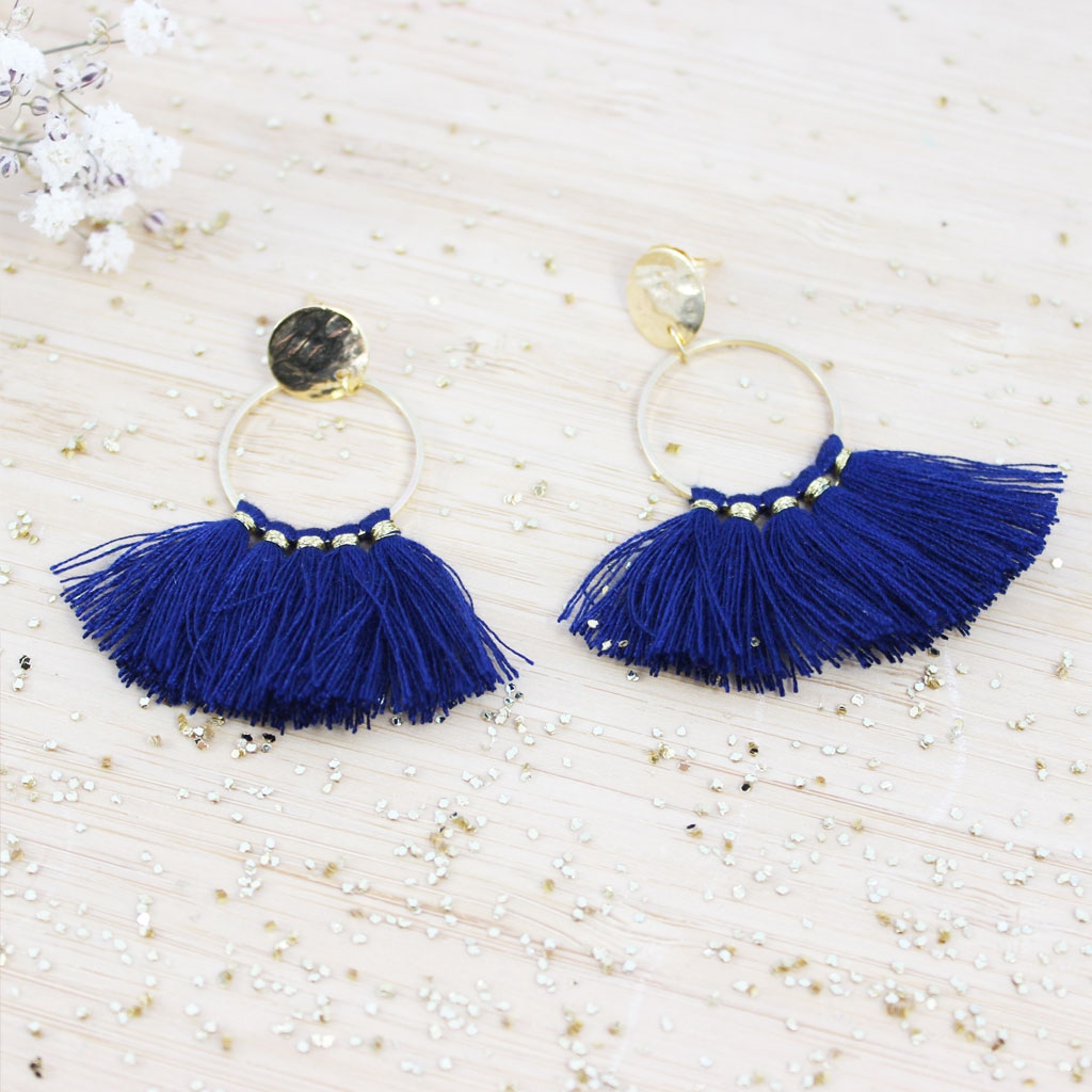 Kit Boucle Doreille Fantaisie à Faire Soi Même Avec Des Pompons Couleur Bleu Nuit